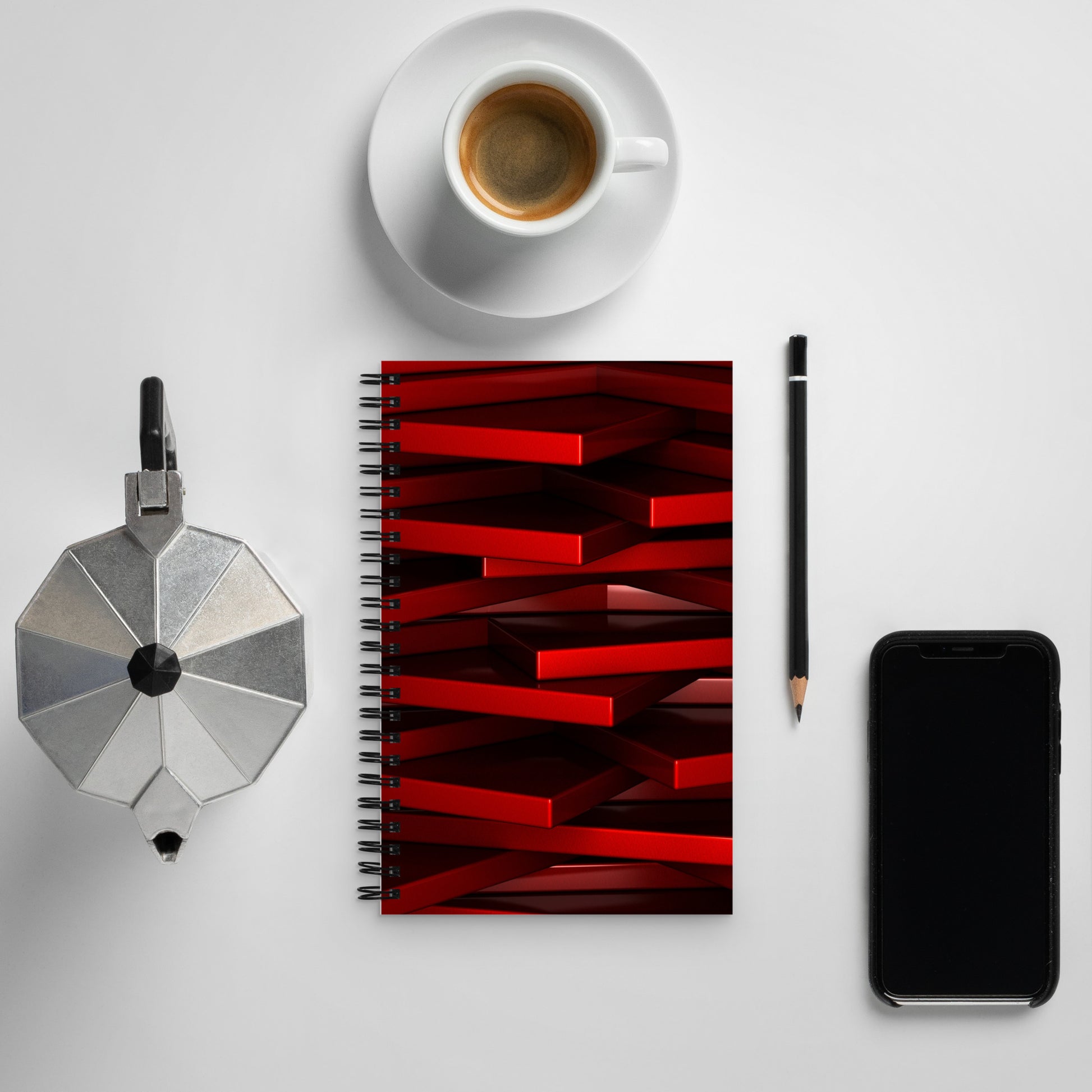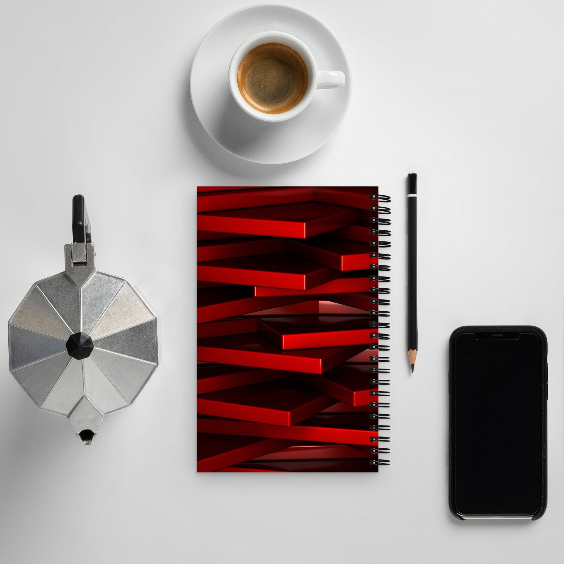 Red geometric Spiral notebook
